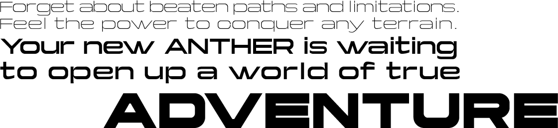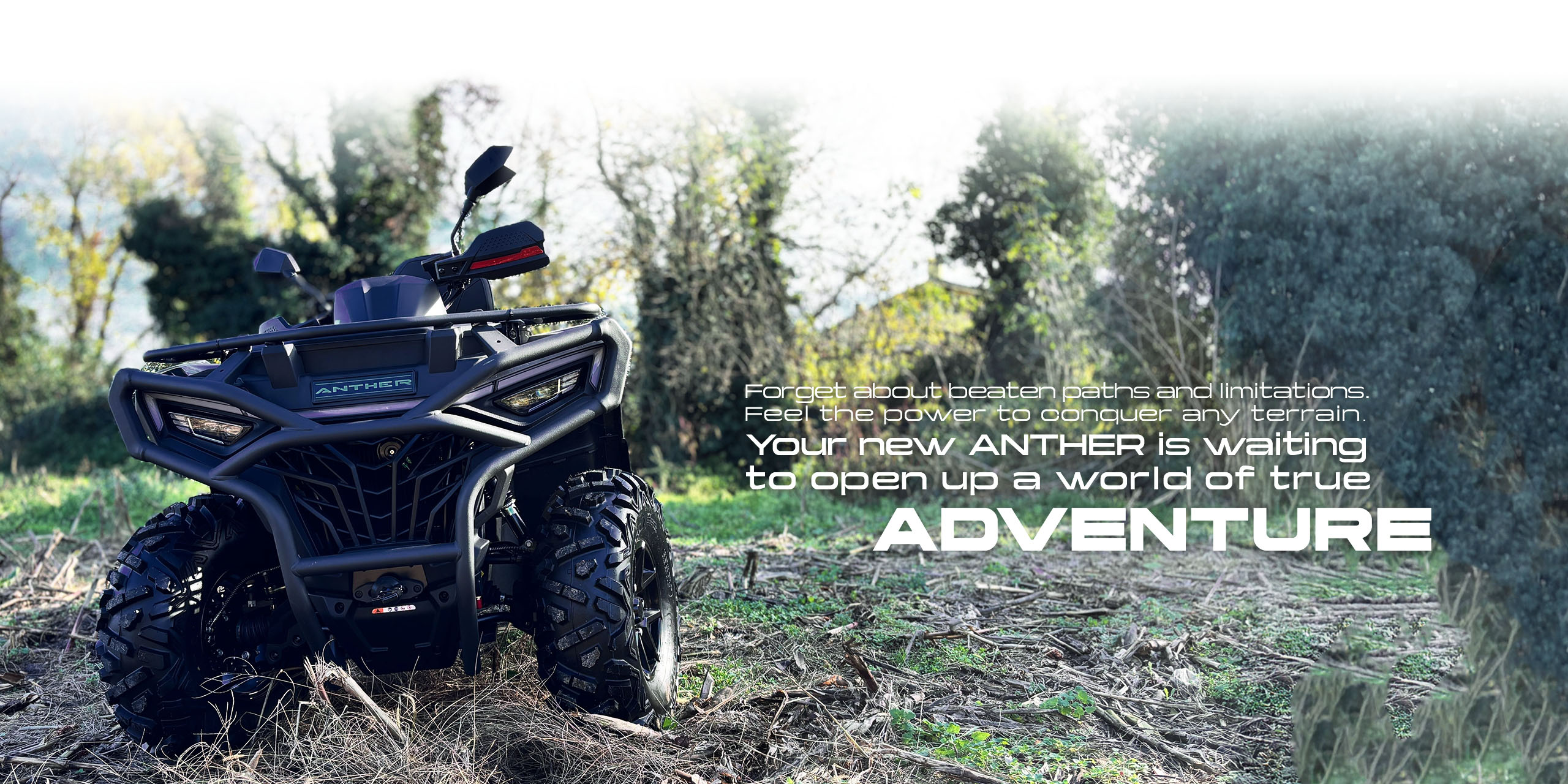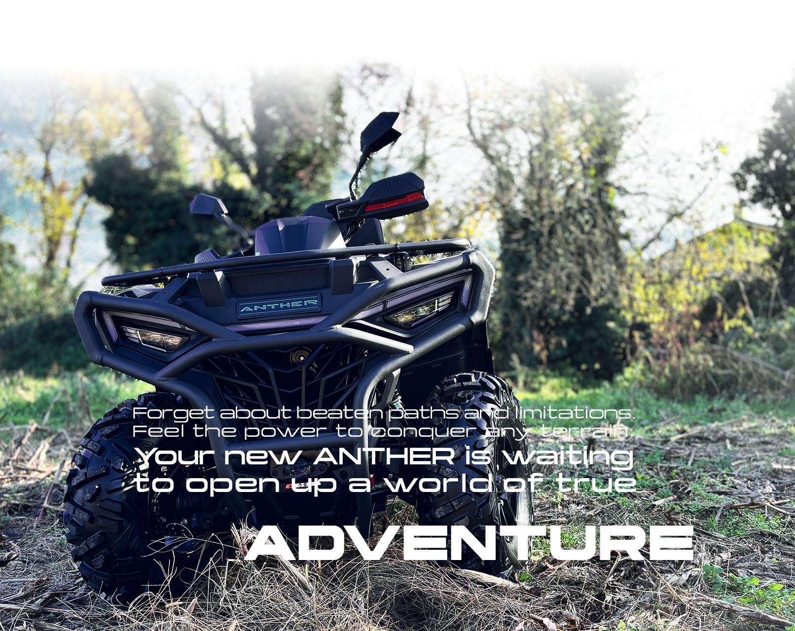 Every Anther vehicle is designed to take you where the road ends and freedom begins: woods, hills, beaches, mountains. Solid, powerful, and meticulously crafted, an Anther quad is more than just a vehicle, but a travel companion capable of transforming every day into an experience. The aggressive design and modern lines convey energy and character, while the reliable mechanics ensure control and safety in every situation.