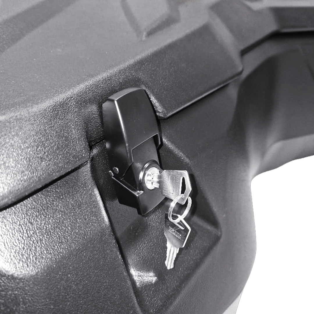 Extra-large rear trunk for ATVs, made of impact-resistant high-density polyethylene. It has a capacity of 90 liters, is waterproof, and closes with two lockable snap latches It is also ideal for many ATV models with a backrest already installed. This waterproof ATV trunk offers extra-large capacity and a tongue-and-groove lid locking system, perfect for work vehicles. Made of high-quality, impact-resistant high-density polyethylene, this trunk offers everything you need for traveling, working, fishing, or hunting.